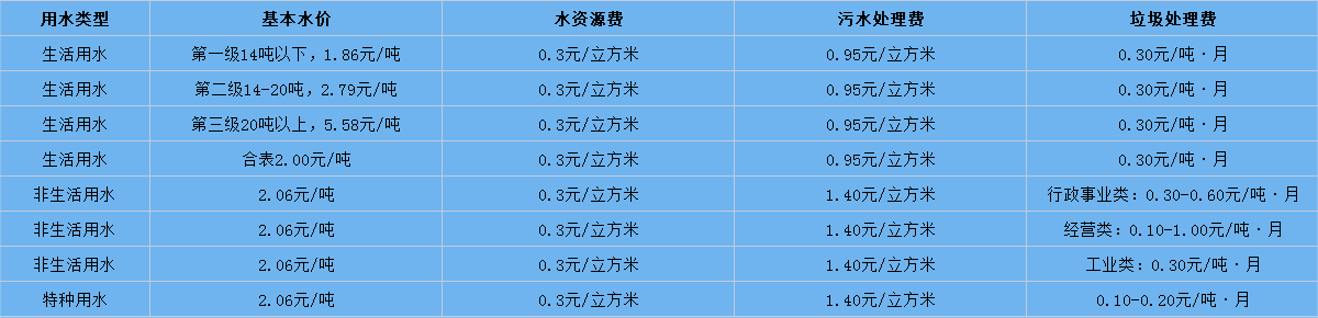 界首市供水價(jià)格表